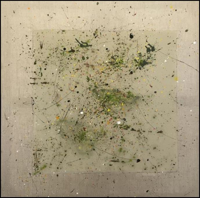 This series of paintings are created without the use of paintbrushes. The paint makes its own marks, the artist choses paint medium and brushless methods – letting the paint go, thus mirroring the lack of control man has on nature/circumstances. Embracing randomness rather than control.