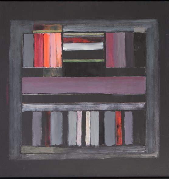 Vertical and horizontal stripes painted in black, red and white mixtures.