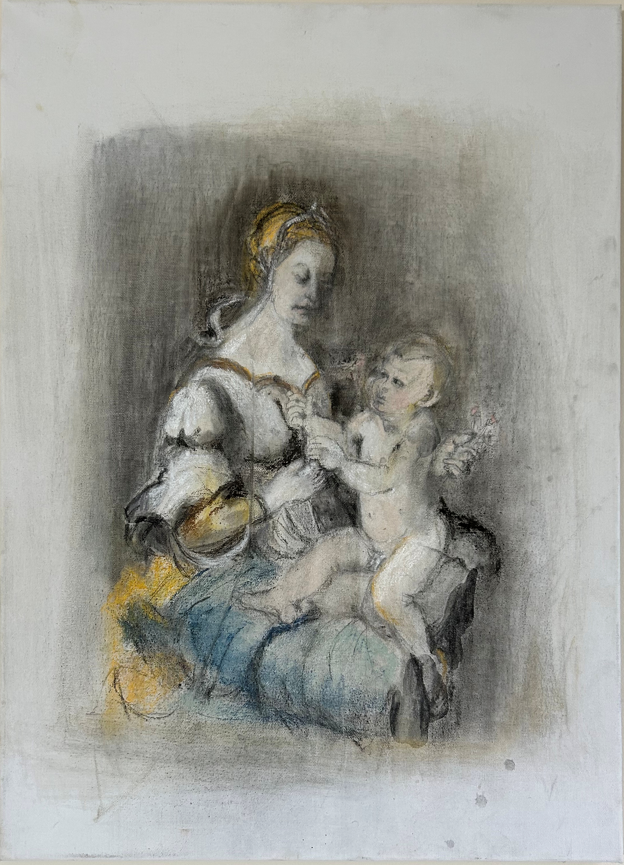 A study based loosely on the Madonna of the Pinks by Raphael (1507)