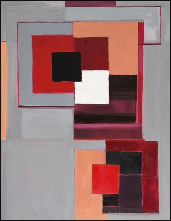 Exploration of colours from the red spectrum, based on squares against a neutral background.